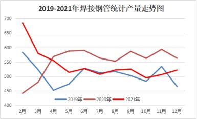 圖3 2019-2021年我國焊管月度產(chǎn)量走勢