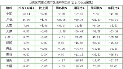 繼上周樂鋼一條棒材線復(fù)產(chǎn)后,本周樂鋼再開一條棒材線生產(chǎn)螺紋,不過盤螺繼續(xù)停產(chǎn)。敬業(yè)產(chǎn)量維持不變,而東華本周建材線全部停產(chǎn),唐山鑫達(dá)仍然停產(chǎn)。從產(chǎn)量變化來看,本周華北地區(qū)無縫鋼管廠家整體建材總產(chǎn)量變化不大,仍然保持低位運(yùn)行。從市場到貨情況來看,受無縫鋼管廠家直發(fā)工地、無縫鋼管廠家資源集港等因素影響,本周,京津冀地區(qū)市場到貨情況較差的局面仍未得到明顯改善,社庫進(jìn)一步下降,市場資源進(jìn)一步減少。資源短缺致使商家惜售心態(tài)強(qiáng)烈,這也是本周現(xiàn)貨端較期貨端韌性更強(qiáng)的原因之一,對現(xiàn)貨價(jià)格起到較強(qiáng)的支撐作用。本周北京建材庫存55.16萬噸,較上周減少5.47萬噸。天津建材庫存為8.2萬噸,比上周減少1.77萬噸。唐山建材庫存為13.43萬噸,比上周減少1.21萬噸。市場庫存消化速度較快。
