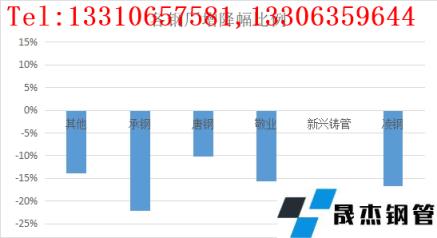 從各庫的統(tǒng)計情況來看,本周各廠庫存均有所減少,各無縫鋼管廠家庫存均大幅減少,承鋼降幅最大。
