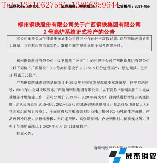 免責聲明:本網站(山東聊城晟杰無縫鋼管廠www.hccoo.com)刊載的“重磅!12月10大鋼鐵項目投產、復產!”等均源于網絡,版權歸原作者所有,且僅代表原作者觀點,本文所載信息僅供參考。轉載僅為學習與交流之目的,如無意中侵犯您的合法權益,請及時聯系刪除。本網站刊登此篇文章并不意味著本站贊同其觀點或證實其內容的真實性,我們不對其科學性、嚴肅性等作任何形式的保證。如果侵犯了您的版權,請盡快聯系我們予以撤銷,謝謝合作!