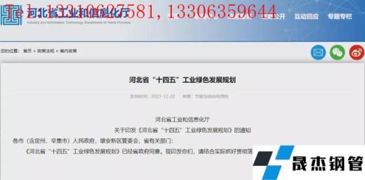 免責聲明:本網站(山東聊城晟杰無縫鋼管廠www.hccoo.com)刊載的“兼并重組、淘汰關停、嚴控新增…河北“十四五”工業發展規劃出爐”等均源于網絡,版權歸原作者所有,且僅代表原作者觀點,本文所載信息僅供參考。轉載僅為學習與交流之目的,如無意中侵犯您的合法權益,請及時聯系刪除。本網站刊登此篇文章并不意味著本站贊同其觀點或證實其內容的真實性,我們不對其科學性、嚴肅性等作任何形式的保證。如果侵犯了您的版權,請盡快聯系我們予以撤銷,謝謝合作!