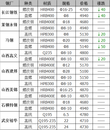 下調2家,占比18.2%,調價幅度10-30元/噸;