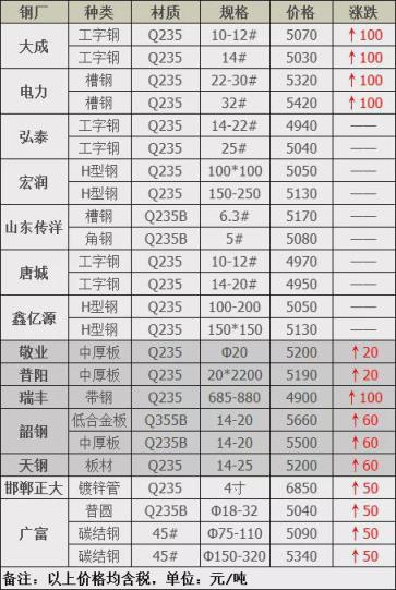 上調(diào)9家,占比64.3%,調(diào)價幅度20-100元/噸;