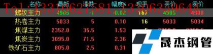 今日螺紋主力期貨跌1,收?qǐng)?bào)4905,跌幅0.02%;熱卷主力漲5,收?qǐng)?bào)5033,漲幅0.1%;焦煤主力漲35.5,收?qǐng)?bào)2352,漲幅1.53%;焦炭主力漲71.5,收?qǐng)?bào)3095,漲幅2.36%;鐵礦石主力漲2.5,收?qǐng)?bào)805,漲幅0.31%。