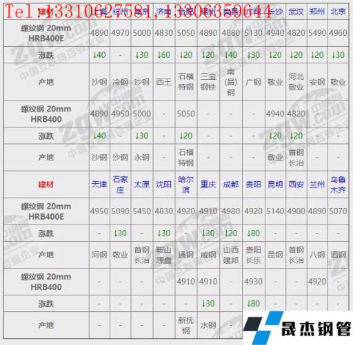 免責聲明:本網站(山東聊城晟杰無縫鋼管廠www.hccoo.com)刊載的“2月14日全國鋼材_無縫鋼管實時價格!”等均源于網絡,版權歸原作者所有,且僅代表原作者觀點,本文所載信息僅供參考。轉載僅為學習與交流之目的,如無意中侵犯您的合法權益,請及時聯系刪除。本網站刊登此篇文章并不意味著本站贊同其觀點或證實其內容的真實性,我們不對其科學性、嚴肅性等作任何形式的保證。如果侵犯了您的版權,請盡快聯系我們予以撤銷,謝謝合作!