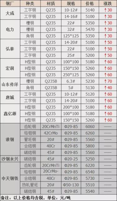 今日型、特鋼共10家無(wú)縫鋼管廠家調(diào)價(jià)發(fā)布,其中: