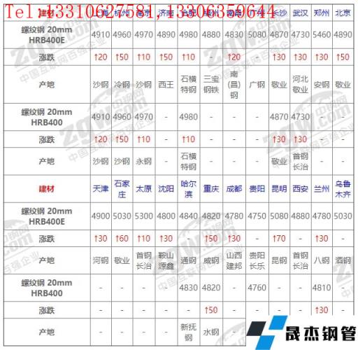 免責聲明:本網站(山東聊城晟杰無縫鋼管廠www.hccoo.com)刊載的“3月3日全國鋼材_無縫鋼管實時價格!”等均源于網絡,版權歸原作者所有,且僅代表原作者觀點,本文所載信息僅供參考。轉載僅為學習與交流之目的,如無意中侵犯您的合法權益,請及時聯系刪除。本網站刊登此篇文章并不意味著本站贊同其觀點或證實其內容的真實性,我們不對其科學性、嚴肅性等作任何形式的保證。如果侵犯了您的版權,請盡快聯系我們予以撤銷,謝謝合作!