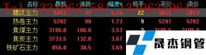 今日螺紋主力期貨漲37,收報5013,漲幅0.74%;熱卷主力漲90,收報5282,漲幅1.73%;焦煤主力漲106,收報3106,漲3.53%;焦炭主力漲132,收報3733.5,漲幅3.67%;鐵礦石主力漲30.5,收報856,漲幅3.69%。