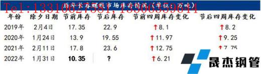 再從庫存上來看,過去三年長春市場螺線庫存在節前均在13萬噸以上,而今年僅在10.35萬噸,較去年下降41.9%,較前年下降25.5%;而節前歷年庫存均呈快速增加態勢,2019-2021年逐年增加,增量在8.1-12.75萬噸,但今年僅增6.21萬噸,環比去年下降51.3%。