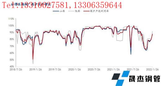 山西區域:本周山西區域除一座高爐延續檢修狀態,部分無縫鋼管廠家高爐生產有不飽和現象,樣本無縫鋼管廠家整體周產量57.6萬噸,周環比增加2.1萬噸,產能利用率86.67%,周環比上升3.16%。