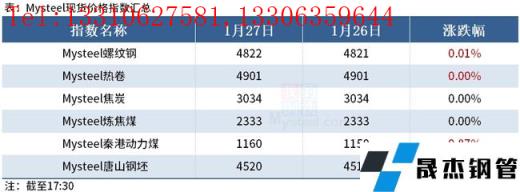 ◎ 1月27日統計新口徑114家無縫鋼管廠家進口燒結粉總庫存3792.52萬噸,燒結粉總日耗98.14萬噸。原口徑64家無縫鋼管廠家進口燒結粉總庫存1754.93萬噸,燒結粉總日耗47.99萬噸,庫存消費比36.57,燒結礦中平均使用進口礦配比88.07%,無縫鋼管廠家不含稅平均鐵水成本3139元/噸。詳情>>