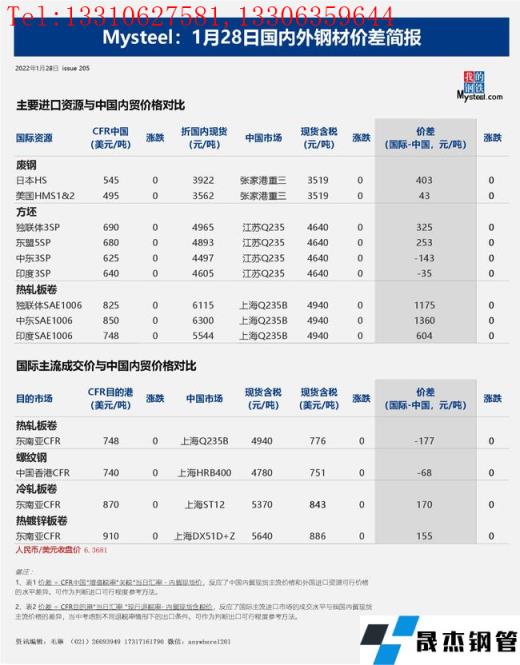 免責聲明:本網站(山東聊城晟杰無縫鋼管廠www.hccoo.com)刊載的“2022年01月28日日報:國內外鋼材_無縫鋼管價差匯總(2022.1.28)”等均源于網絡,版權歸原作者所有,且僅代表原作者觀點,本文所載信息僅供參考。轉載僅為學習與交流之目的,如無意中侵犯您的合法權益,請及時聯系刪除。本網站刊登此篇文章并不意味著本站贊同其觀點或證實其內容的真實性,我們不對其科學性、嚴肅性等作任何形式的保證。如果侵犯了您的版權,請盡快聯系我們予以撤銷,謝謝合作!