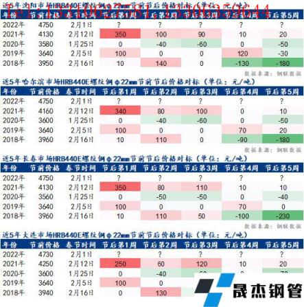 小編匯總了近5年春節前后東北建筑厚壁無縫鋼管市場價格變化情況,除2020年受公共衛生事件影響平穩運行外,其余年份節后首周多數都是“開門紅”狀態,在第4-5周基本會出現沖高后回調的情況。具體情況如下: