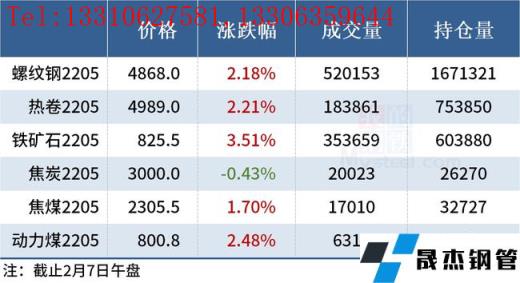 免責聲明:本網站(山東聊城晟杰無縫鋼管廠www.hccoo.com)刊載的“2022年02月07日午報:鋼價全線上漲,鐵礦石期貨漲逾3%”等均源于網絡,版權歸原作者所有,且僅代表原作者觀點,本文所載信息僅供參考。轉載僅為學習與交流之目的,如無意中侵犯您的合法權益,請及時聯系刪除。本網站刊登此篇文章并不意味著本站贊同其觀點或證實其內容的真實性,我們不對其科學性、嚴肅性等作任何形式的保證。如果侵犯了您的版權,請盡快聯系我們予以撤銷,謝謝合作!
