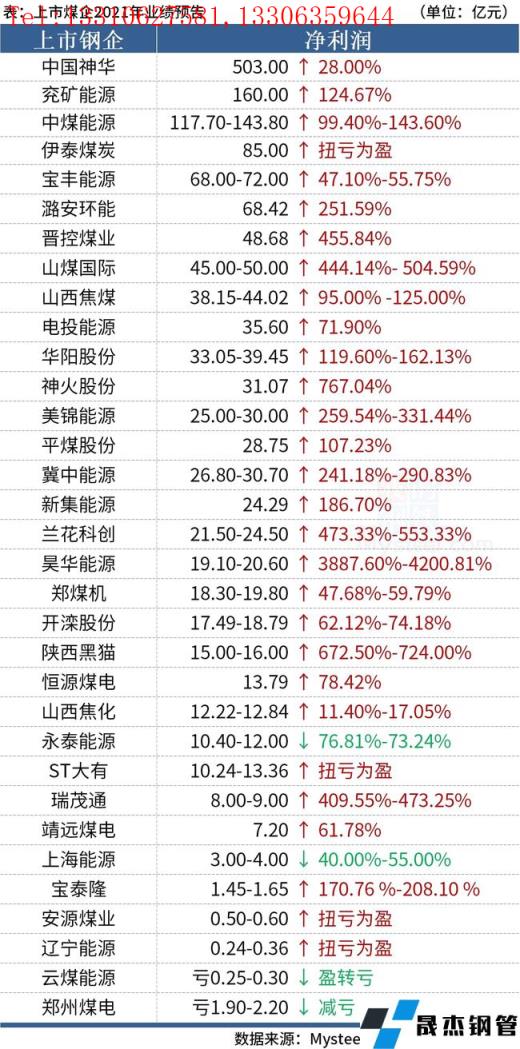 免責聲明:本網站(山東聊城晟杰無縫鋼管廠www.hccoo.com)刊載的“29家上市煤企業績飄紅,15家實現凈利潤翻倍增長”等均源于網絡,版權歸原作者所有,且僅代表原作者觀點,本文所載信息僅供參考。轉載僅為學習與交流之目的,如無意中侵犯您的合法權益,請及時聯系刪除。本網站刊登此篇文章并不意味著本站贊同其觀點或證實其內容的真實性,我們不對其科學性、嚴肅性等作任何形式的保證。如果侵犯了您的版權,請盡快聯系我們予以撤銷,謝謝合作!