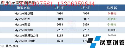 免責聲明:本網站(山東聊城晟杰無縫鋼管廠www.hccoo.com)刊載的“2022年02月09日晚餐:黑色期貨全線跳水,鋼坯利潤升至345元”等均源于網絡,版權歸原作者所有,且僅代表原作者觀點,本文所載信息僅供參考。轉載僅為學習與交流之目的,如無意中侵犯您的合法權益,請及時聯系刪除。本網站刊登此篇文章并不意味著本站贊同其觀點或證實其內容的真實性,我們不對其科學性、嚴肅性等作任何形式的保證。如果侵犯了您的版權,請盡快聯系我們予以撤銷,謝謝合作!