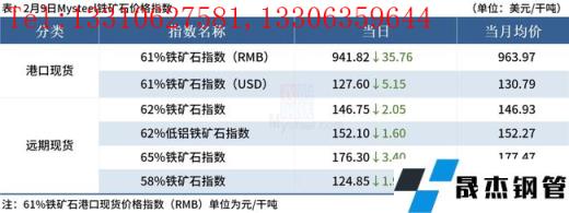 ◎ 2月9日,全國主港鐵礦石成交87.50萬噸,環比增45.6%。