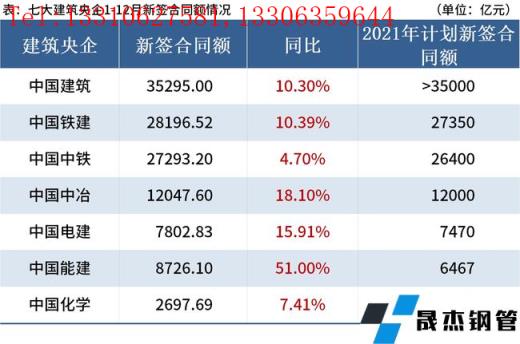 免責聲明:本網(wǎng)站(山東聊城晟杰無縫鋼管廠www.hccoo.com)刊載的“7家建筑央企2021年新簽合同總額超12萬億元,同比增長12%”等均源于網(wǎng)絡(luò),版權(quán)歸原作者所有,且僅代表原作者觀點,本文所載信息僅供參考。轉(zhuǎn)載僅為學習與交流之目的,如無意中侵犯您的合法權(quán)益,請及時聯(lián)系刪除。本網(wǎng)站刊登此篇文章并不意味著本站贊同其觀點或證實其內(nèi)容的真實性,我們不對其科學性、嚴肅性等作任何形式的保證。如果侵犯了您的版權(quán),請盡快聯(lián)系我們予以撤銷,謝謝合作!