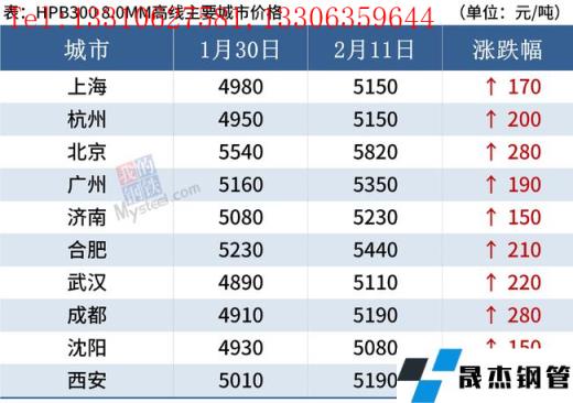據(jù)監(jiān)測(cè),截至2月11日,全國(guó)主要城市20mm三級(jí)抗震螺紋鋼均價(jià)5032元/噸,較節(jié)前(1月30日)上漲215元/噸;8.0mmHPB300高線均價(jià)5244元/噸,較節(jié)前上漲221元/噸。