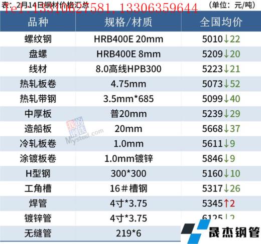 2月14日,國內(nèi)厚壁無縫鋼管市場價(jià)格下跌,唐山普方坯出廠價(jià)穩(wěn)報(bào)4700元/噸。近期,包括國家發(fā)改委、市場監(jiān)管總局、中鋼協(xié)在內(nèi)的多部門和機(jī)構(gòu)都提出,要加強(qiáng)市場監(jiān)管、確保鐵礦石市場平穩(wěn)運(yùn)行。近日鐵礦石、厚壁無縫鋼管期貨市場沖高回落,鋼價(jià)跟隨調(diào)整。
