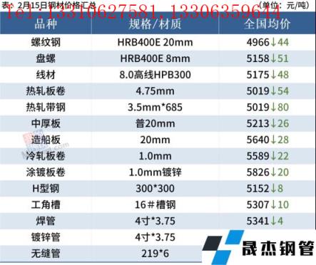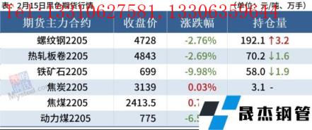 熱軋板卷:2月15日,全國(guó)24個(gè)主要城市4.75mm熱軋板卷均價(jià)5019元/噸,較上個(gè)交易日價(jià)格下跌54元/噸。現(xiàn)貨市場(chǎng)早盤(pán)報(bào)價(jià)小幅走弱,跌后市場(chǎng)成交乏力,加之現(xiàn)貨成交不佳,午后現(xiàn)貨價(jià)格繼續(xù)下跌。從目前情況來(lái)看,前期邏輯低庫(kù)存低供應(yīng)雖然還在,但原料端雙焦和鐵礦的走弱,對(duì)市場(chǎng)的影響均大于基本面影響,導(dǎo)致了現(xiàn)貨回調(diào)。綜合來(lái)看,預(yù)計(jì)16日熱軋板卷價(jià)格或?qū)⑷鮿?shì)震蕩運(yùn)行。