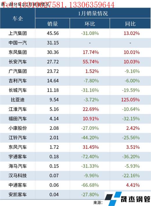 免責聲明:本網站(山東聊城晟杰無縫鋼管廠www.hccoo.com)刊載的“1月我國汽車產銷降幅明顯,多數車企呈現雙位數下跌”等均源于網絡,版權歸原作者所有,且僅代表原作者觀點,本文所載信息僅供參考。轉載僅為學習與交流之目的,如無意中侵犯您的合法權益,請及時聯系刪除。本網站刊登此篇文章并不意味著本站贊同其觀點或證實其內容的真實性,我們不對其科學性、嚴肅性等作任何形式的保證。如果侵犯了您的版權,請盡快聯系我們予以撤銷,謝謝合作!