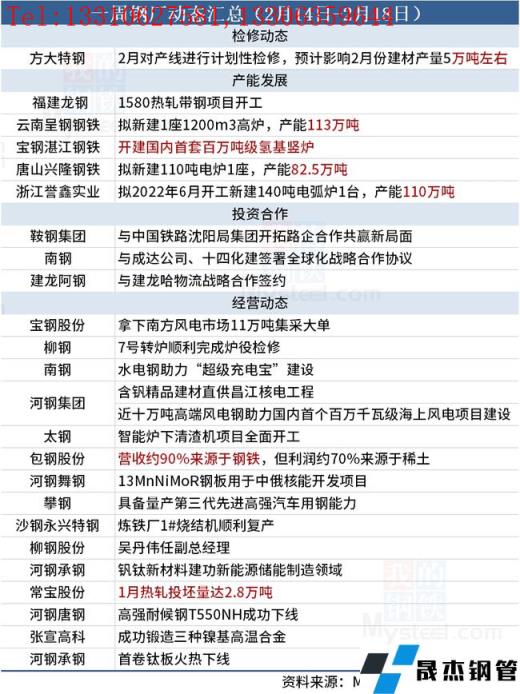 免責聲明:本網站(山東聊城晟杰無縫鋼管廠www.hccoo.com)刊載的“一周無縫鋼管廠家動態匯總(2月14日-2月18日)”等均源于網絡,版權歸原作者所有,且僅代表原作者觀點,本文所載信息僅供參考。轉載僅為學習與交流之目的,如無意中侵犯您的合法權益,請及時聯系刪除。本網站刊登此篇文章并不意味著本站贊同其觀點或證實其內容的真實性,我們不對其科學性、嚴肅性等作任何形式的保證。如果侵犯了您的版權,請盡快聯系我們予以撤銷,謝謝合作!