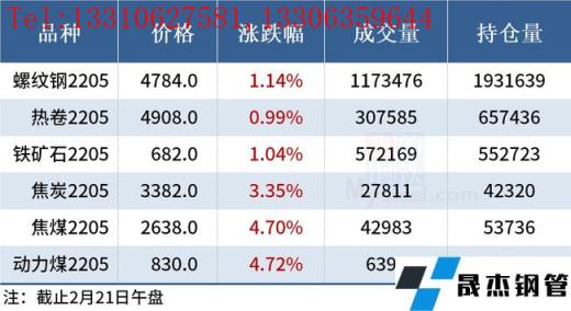 免責聲明:本網站(山東聊城晟杰無縫鋼管廠www.hccoo.com)刊載的“2022年02月21日午報:鋼價多數上漲,黑色期貨集體飄紅”等均源于網絡,版權歸原作者所有,且僅代表原作者觀點,本文所載信息僅供參考。轉載僅為學習與交流之目的,如無意中侵犯您的合法權益,請及時聯系刪除。本網站刊登此篇文章并不意味著本站贊同其觀點或證實其內容的真實性,我們不對其科學性、嚴肅性等作任何形式的保證。如果侵犯了您的版權,請盡快聯系我們予以撤銷,謝謝合作!