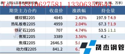 焦炭:2月21日,焦炭市場偏穩運行。烏海市場個別焦企對焦炭價格上漲200元/噸,主流地區暫無回應。焦企開工下滑,產量繼續下降,庫存多降至低位水平,出貨情況良好,市場情緒逐漸好轉,焦炭價格有望上漲。很多地區的低庫存無縫厚壁鋼管廠家積極補庫,隨著冬奧會閉幕,各地的無縫厚壁鋼管廠家都有較強的復產預期,無縫厚壁鋼管廠家開始逐步增庫,剛需回升,整體看焦炭市場供需格局繼續趨于好轉,預計短期內焦炭市場暫穩運行。