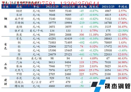免責聲明:本網站(山東聊城晟杰無縫鋼管廠www.hccoo.com)刊載的“周報:大宗原材料價格周報(2.21-2.25)”等均源于網絡,版權歸原作者所有,且僅代表原作者觀點,本文所載信息僅供參考。轉載僅為學習與交流之目的,如無意中侵犯您的合法權益,請及時聯系刪除。本網站刊登此篇文章并不意味著本站贊同其觀點或證實其內容的真實性,我們不對其科學性、嚴肅性等作任何形式的保證。如果侵犯了您的版權,請盡快聯系我們予以撤銷,謝謝合作!