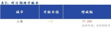 昨日收盤階段本地期現升貼水為-13元/噸,環比增幅77.20%。