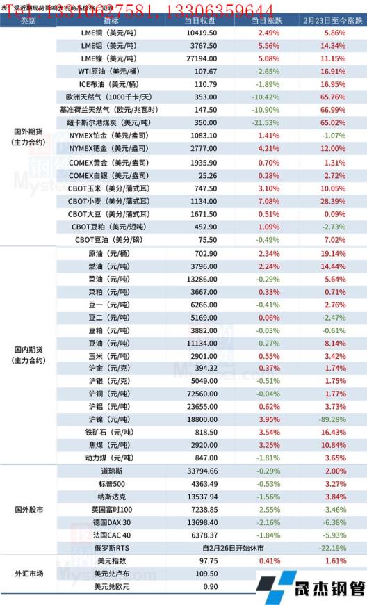 免責聲明:本網站(山東聊城晟杰無縫鋼管廠www.hccoo.com)刊載的“受近期局勢影響大宗商品價格一覽表(3月3日)”等均源于網絡,版權歸原作者所有,且僅代表原作者觀點,本文所載信息僅供參考。轉載僅為學習與交流之目的,如無意中侵犯您的合法權益,請及時聯系刪除。本網站刊登此篇文章并不意味著本站贊同其觀點或證實其內容的真實性,我們不對其科學性、嚴肅性等作任何形式的保證。如果侵犯了您的版權,請盡快聯系我們予以撤銷,謝謝合作!