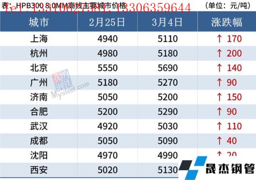 據(jù)監(jiān)測,截至3月4日,全國主要城市20mm三級抗震螺紋鋼均價(jià)4946元/噸,周環(huán)比上漲77元/噸;8.0mmHPB300高線均價(jià)5161元/噸,周環(huán)比上漲94元/噸。