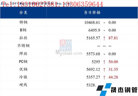 免責聲明:本網站(山東聊城晟杰無縫鋼管廠www.hccoo.com)刊載的“2022年03月07日日報:鋼材_無縫鋼管價格指數上漲97.12元/噸”等均源于網絡,版權歸原作者所有,且僅代表原作者觀點,本文所載信息僅供參考。轉載僅為學習與交流之目的,如無意中侵犯您的合法權益,請及時聯系刪除。本網站刊登此篇文章并不意味著本站贊同其觀點或證實其內容的真實性,我們不對其科學性、嚴肅性等作任何形式的保證。如果侵犯了您的版權,請盡快聯系我們予以撤銷,謝謝合作!