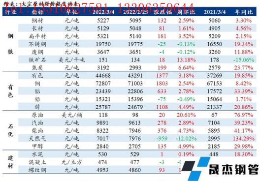 免責聲明:本網站(山東聊城晟杰無縫鋼管廠www.hccoo.com)刊載的“周報:大宗原材料價格周報(2.28-3.4)”等均源于網絡,版權歸原作者所有,且僅代表原作者觀點,本文所載信息僅供參考。轉載僅為學習與交流之目的,如無意中侵犯您的合法權益,請及時聯系刪除。本網站刊登此篇文章并不意味著本站贊同其觀點或證實其內容的真實性,我們不對其科學性、嚴肅性等作任何形式的保證。如果侵犯了您的版權,請盡快聯系我們予以撤銷,謝謝合作!