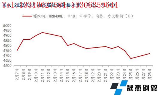 整體來看,2月份江西地區建筑厚壁無縫鋼管價格行情整體呈現先揚后抑走勢。截止2月28日,南昌市場方大特鋼螺紋鋼HRB400EФ18mm價格為4720元/噸,月環比1月末上漲50元/噸,較去年同期持平。具體來看,2月初受春節小長假影響,江西市場全面休市,價格整體平穩過渡。小長假過后,宏觀數據利好頻現,強預期的帶動下,無縫厚壁鋼管廠家積極推漲,期螺大幅拉漲,市場迎來開門紅行情。后半月由于需求釋放不及預期,疊加國家對于大宗商品保供穩價政策影響,現貨價格沖高回落。