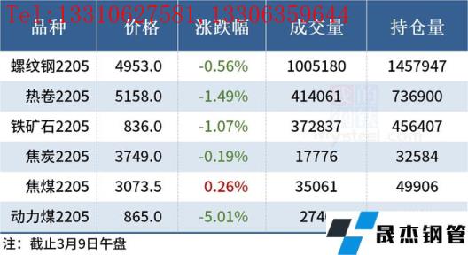免責聲明:本網站(山東聊城晟杰無縫鋼管廠www.hccoo.com)刊載的“2022年03月09日午報:鋼價多數下跌,動力煤期貨跌逾5%”等均源于網絡,版權歸原作者所有,且僅代表原作者觀點,本文所載信息僅供參考。轉載僅為學習與交流之目的,如無意中侵犯您的合法權益,請及時聯系刪除。本網站刊登此篇文章并不意味著本站贊同其觀點或證實其內容的真實性,我們不對其科學性、嚴肅性等作任何形式的保證。如果侵犯了您的版權,請盡快聯系我們予以撤銷,謝謝合作!