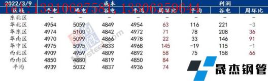 獨(dú)立電弧爐建筑厚壁無縫鋼管無縫厚壁鋼管廠家周度成本調(diào)研(2022年3月9日)(單位:元/噸)