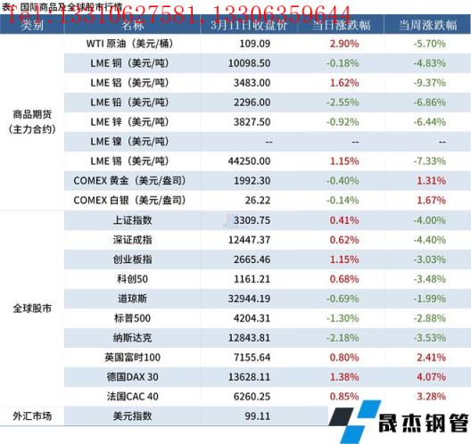 金融市場:本周主要商品期貨除黃金、白銀上漲外,其余品種價格均下跌;全球股市中,中國股市、美股下跌,歐股上漲;美元指數(shù)99.11,上漲0.61%。