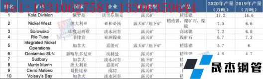 以上為2020年全球十大鎳礦山排名。詳情請點擊》》