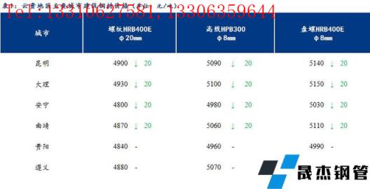 【今日價(jià)格】從云貴主要城市建筑厚壁無縫鋼管價(jià)格來看,今日云南建筑厚壁無縫鋼管市場價(jià)格下跌20元/噸,貴州建筑厚壁無縫鋼管市場價(jià)格持穩(wěn)。