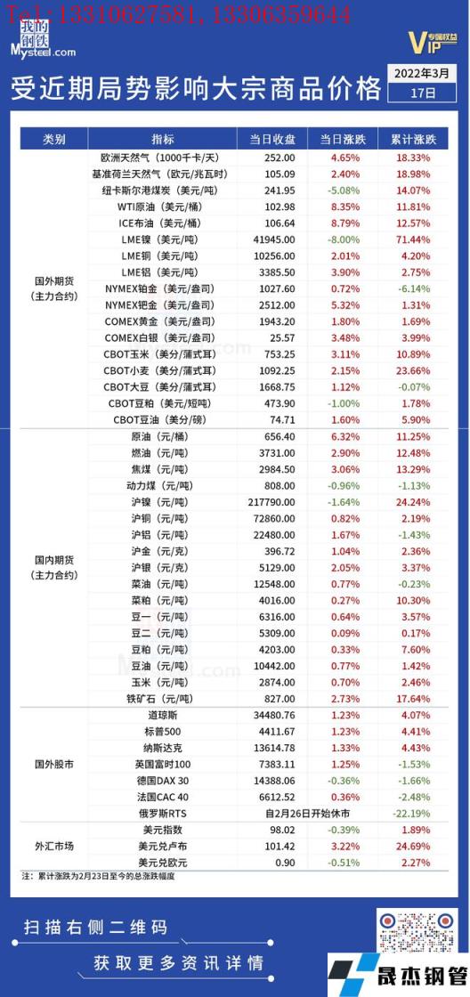 免責聲明:本網站(山東聊城晟杰無縫鋼管廠www.hccoo.com)刊載的“受近期局勢影響大宗商品價格一覽表(3月17日)”等均源于網絡,版權歸原作者所有,且僅代表原作者觀點,本文所載信息僅供參考。轉載僅為學習與交流之目的,如無意中侵犯您的合法權益,請及時聯系刪除。本網站刊登此篇文章并不意味著本站贊同其觀點或證實其內容的真實性,我們不對其科學性、嚴肅性等作任何形式的保證。如果侵犯了您的版權,請盡快聯系我們予以撤銷,謝謝合作!