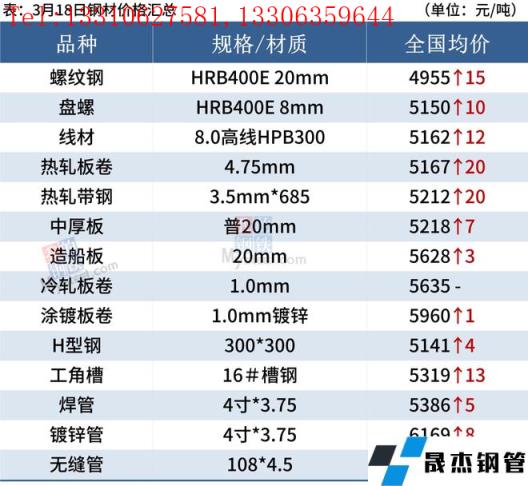 建筑厚壁無縫鋼管:3月18日,全國31個主要城市20mm三級抗震螺紋鋼均價4955元/噸,較上個交易日漲15元/噸。短期來看,近期疫情對供需兩面均有影響,螺紋鋼產量繼續回升,但消費水平受疫情影響有所下滑,短期需求恢復仍需等待。綜合各方面因素,預計下周國內建筑厚壁無縫鋼管價格或將窄幅震蕩為主。