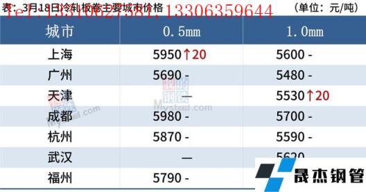 冷軋板卷:3月18日,全國24個主要城市1.0mm冷卷均價5635元/噸,較上個交易日持平。黑色電子盤高位震蕩運行,當前市場大部分商家出貨意愿較強,報價以穩為主,少部分商家調高報價后,反饋出貨較為艱難。當前下游終端態度較為謹慎,按需采購為主,并且對高價資源接受程度較差。綜合來看預計下周全國冷軋板卷價格或將區間震蕩運行。