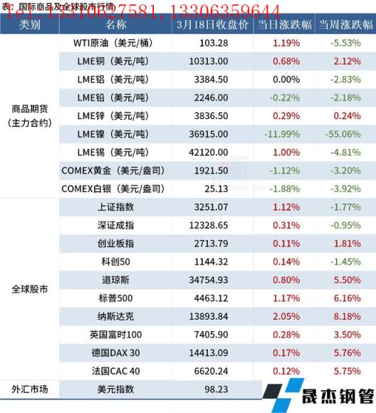 ◎3月18日,全國主港鐵礦石成交95.50萬噸,環比增19.4%;237家主流貿易商建材成交16.96萬噸,環比增23.2%。