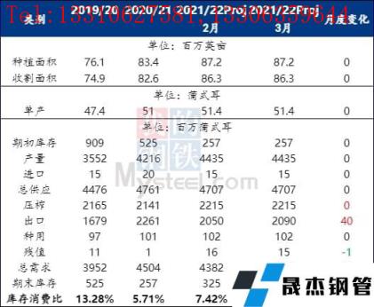 其二:南美大豆減產之后,美國大豆出口環境向好。3月份USDA供需報告數據顯示,考慮到南美大豆減產之后,美國舊作大豆出口數量上調0.4億蒲至20.9億蒲,最終令2021/2022年度美國大豆結轉庫存落至2.85億蒲,庫消比6.45%。美國大豆結轉庫存的繼續走低,令美國大豆舊作平衡表不斷收緊,對CBOT大豆近月合約價格提供了一定支撐;且近三個月來由于美國大豆結轉庫存的不斷走低,與全球大豆去庫節奏形成共振,而非此前的拖累。
