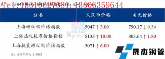 3月24日普鋼絕對價格指數變化:綜合指數5246.46,上漲19.78;螺紋鋼指數4986.07,上漲15.68;線材指數5320.91,上漲17.43;熱軋板卷指數5182.13,上漲20.99;冷軋板卷指數5577.53,上漲11.13;中厚板指數5192.89,上漲14.52。