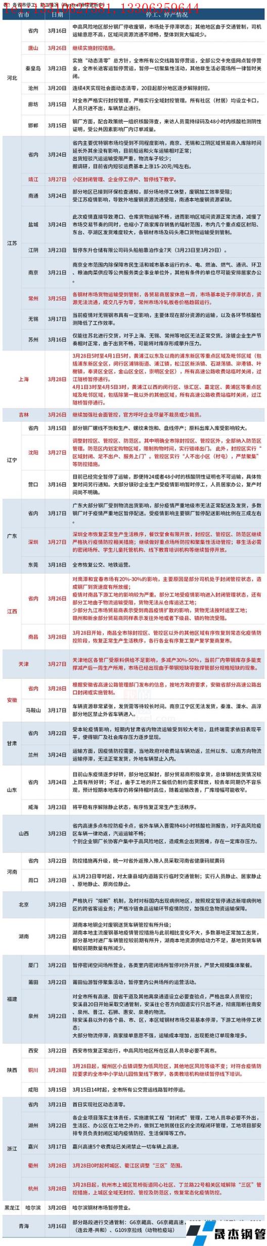 免責聲明:本網站(山東聊城晟杰無縫鋼管廠www.hccoo.com)刊載的“疫情防控下,各省停工復工最新情況匯總(十)”等均源于網絡,版權歸原作者所有,且僅代表原作者觀點,本文所載信息僅供參考。轉載僅為學習與交流之目的,如無意中侵犯您的合法權益,請及時聯系刪除。本網站刊登此篇文章并不意味著本站贊同其觀點或證實其內容的真實性,我們不對其科學性、嚴肅性等作任何形式的保證。如果侵犯了您的版權,請盡快聯系我們予以撤銷,謝謝合作!