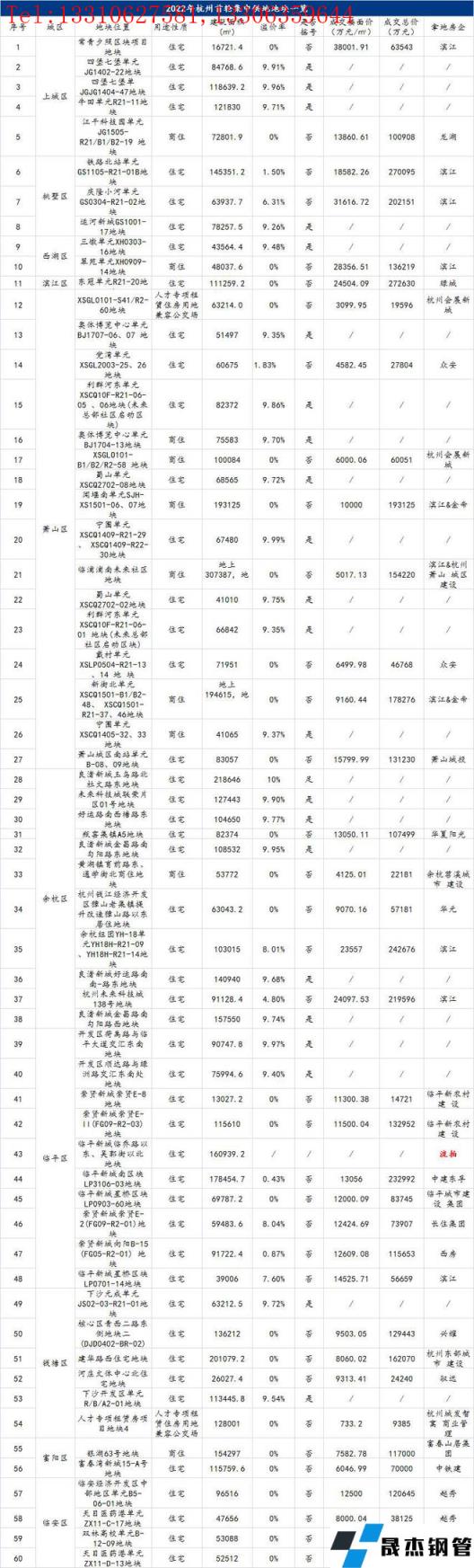 2022年杭州首批土地集中出讓落下帷幕,60宗地塊(包含2宗人才租賃用地)總占地面積約3849畝,總起拍價達(dá)798億元。