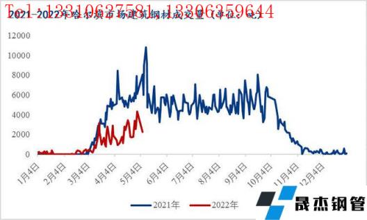4月哈爾濱市場(chǎng)螺線(xiàn)成交量日均值在2233噸,同比減少3521噸減幅61%,今年成交高值在4330噸,去年成交高值在7900噸。疫情管控下,下游需求啟動(dòng)緩慢,同時(shí)商家對(duì)于后期預(yù)期較弱扣貨意愿較低,市場(chǎng)成交活躍度大大低于常態(tài)。